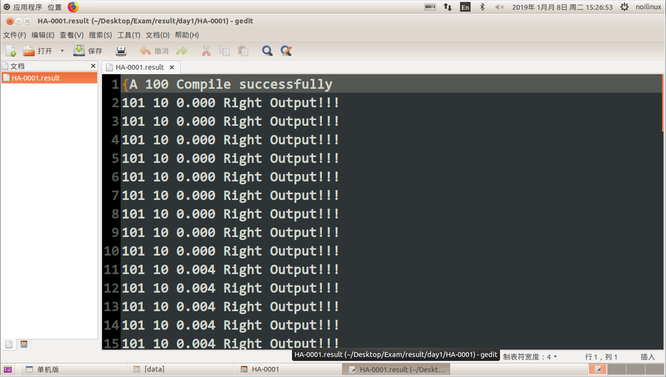 大功告成,我们可以写一份代码保存到桌面(注意Gedit不会自动添加扩展名),然后执行快捷键体验了。